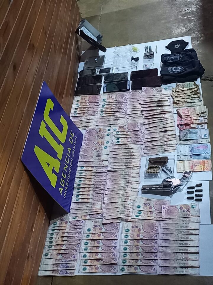 Lo secuestrado consta de ocho teléfonos celulares, una suma de dinero superior a los $16.000 (pesos argentinos), un arma de fuego y varias municiones; asimismo se incautó una balanza digital, recortes de nylon, librillos de armado de cigarrillo, un cigarrillo de armado casero con marihuana, un rayador, e indumentaria. Por otra parte se agregan a la causa chips y memorias SD (material informático), y el secuestro de una planta de marihuana de aproximadamente tres metros.