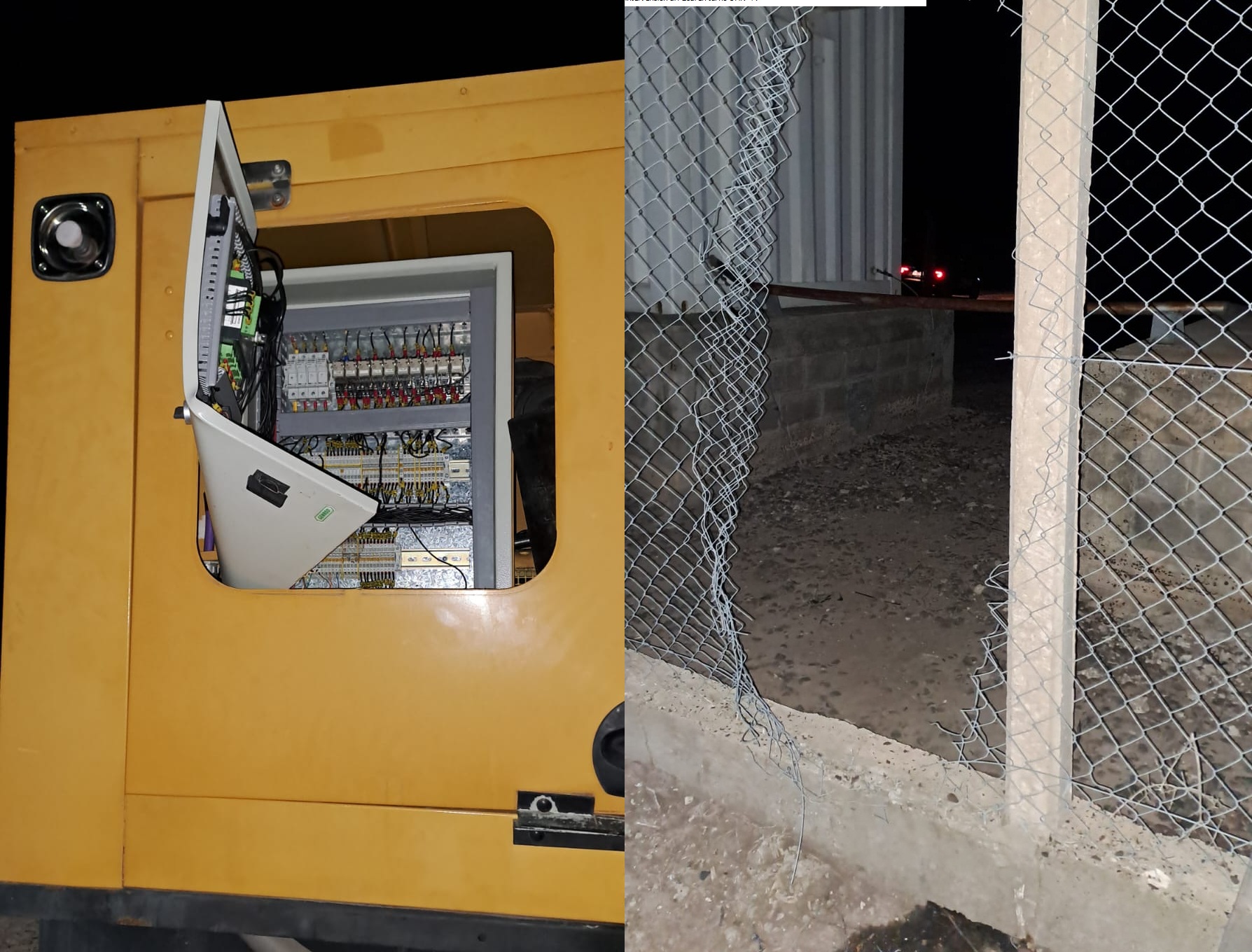 En el interior del predio dos masculinos en actitud sospechosa quienes al notar la presencia policial se dan a la fuga en el interior del monte; constatando funcionarios policiales en el tejido perimetral y central dañados, supuestamente, intentado sustraer cables y baterías, no logrando su cometido por el arribo del personal policial.