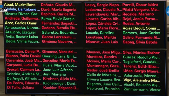 Con 42 votos en contra fue rechazado por mayoría. Sigue vigente la norma pero ahora depende de la Cámara de Diputados para mantener su validez.