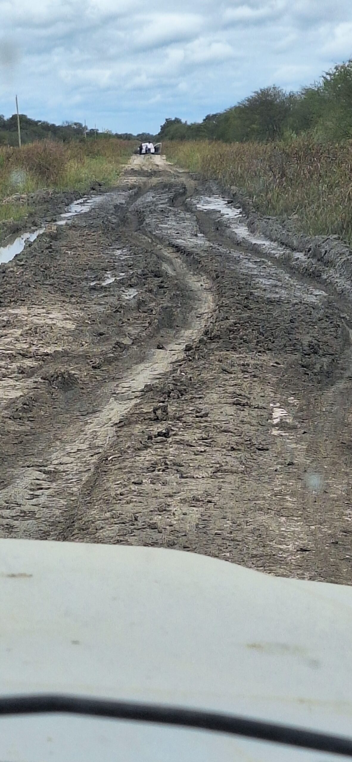 Hoy queriendo ingresar veo un auto clavado en una de las cortadas y como el camino esta desastroso no da lugar ni para auxiliar ni mucho menos sobrepasar.