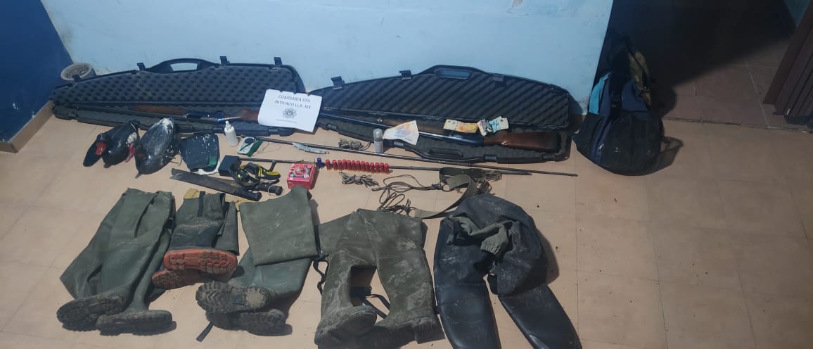 En fecha 11/06/2024, siendo las 19; 30 horas, personal policial de la Comisaria 6ta de Intiyaco, circunstancias realizaba recorridas en prevención de delito y/o contravención por Ruta Pcial. Nº 31, observan un vehículo en actitud sospechosa, por lo que solicitan detenga la marcha haciendo en principio caso omiso a la petición, luego logran interceptarlo por Ruta Pcial. Nº3 altura ex acceso Ruta Pcia.l Nº 31 , procediéndose al control resultando una camioneta marca Toyota Hilux, con tres ocupantes, mayores de edad; su conductor domiciliado en Santa Fe , sus acompañantes en la localidad de Fortín Olmos; de control el interior del vehículo, previa autorización del propietario, detectan armas de fuego y varios artilugios que se utilizan para la actividad de caza, se convocó a un testigo civil para la realización de la misma, constatando (02) armas de fuego Tipo escopeta semiautomático, calibre 12 UAB largo de cañón de 600 mm o más, Escopeta semiautomático , CALIBRE 12 AUB largo de cañon 600 mm o más, Cartuchos calibre 13, señuelos con baterías y alas ; soportes de hierro para señuelos, silbatos distintos modelos, etc; procedieron al secuestro preventivos de los elementos antes descriptos, como así también del vehículo; a la aprehensión de los masculinos quienes fueron trasladaos en principio al hospital local para su atención medica y posteriormente a sede policial. Interiorizado Fiscal en Turno solicito diligencias a seguir.-