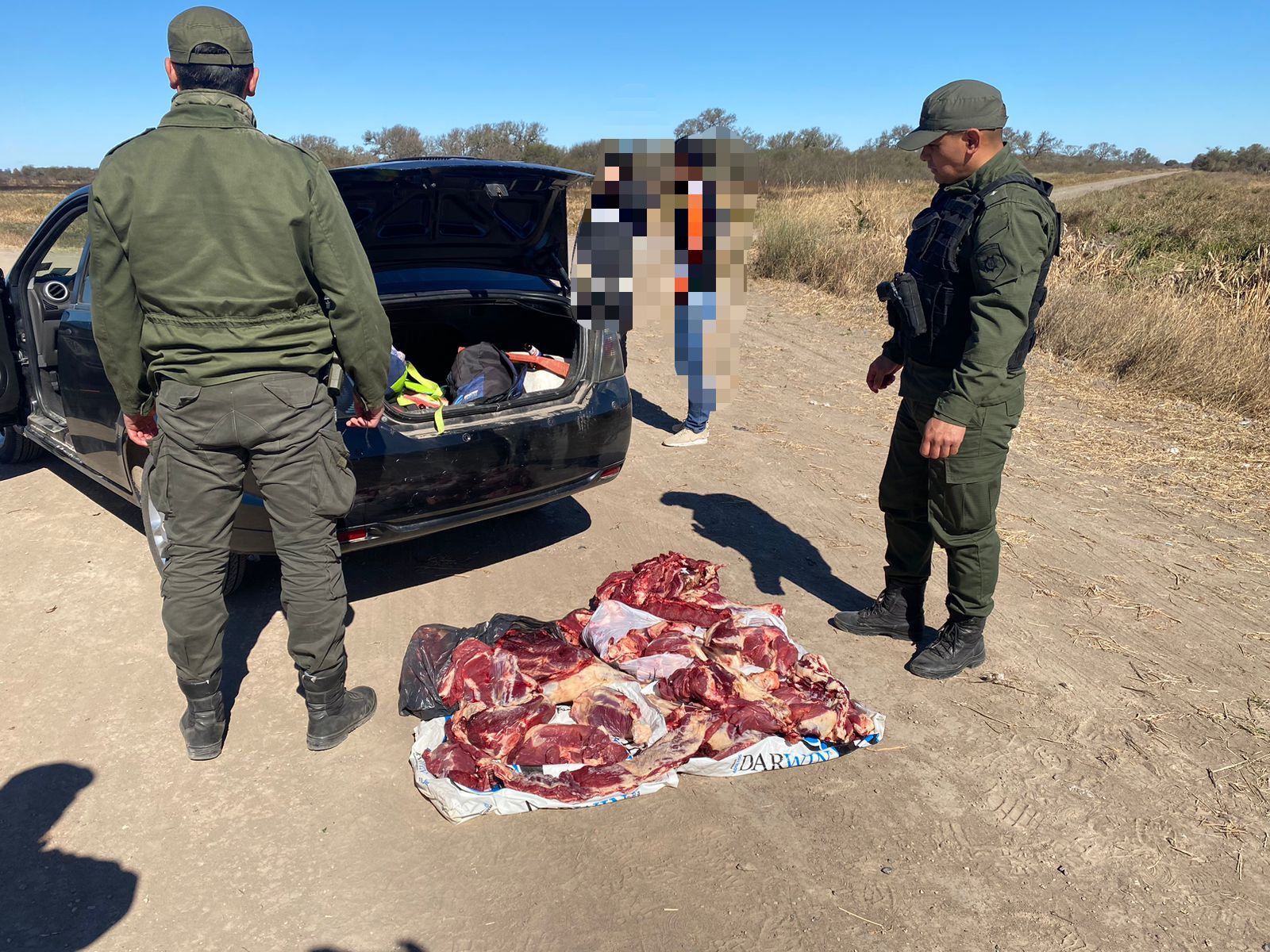 Personal de la Guardia Rural de la ciudad de Vera Interceptaron un automóvil con aproximadamente 100 Kilogramos de producto carneo de animal faenado. Detuvieron a cinco personas, uno de ellos sería personal policial.
