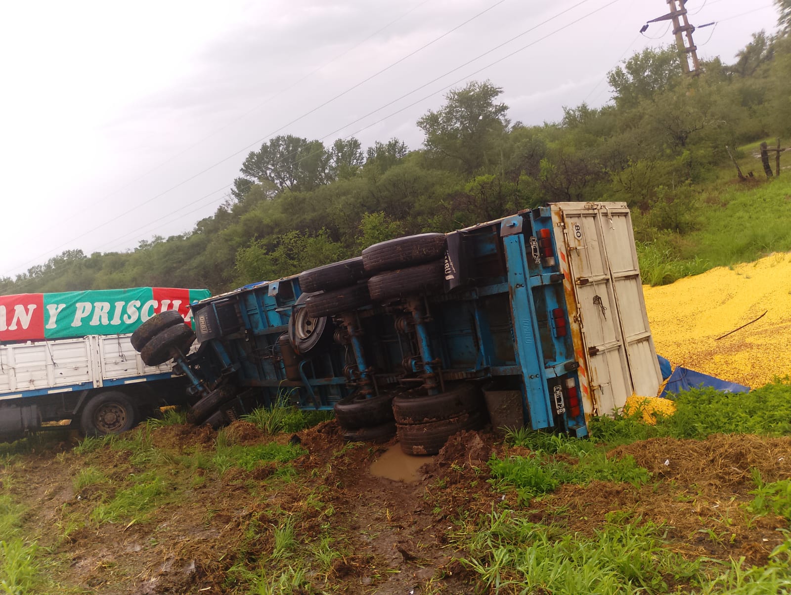 El mismo era conducido por un hombre de 44 años de edad, domiciliado en la ciudad de Villa Angela, y por causas que se tratan de establecer, perdió el control del vehículo y sin intervención de terceros se fue a la banquina provocando el vuelco de la carga de maíz.