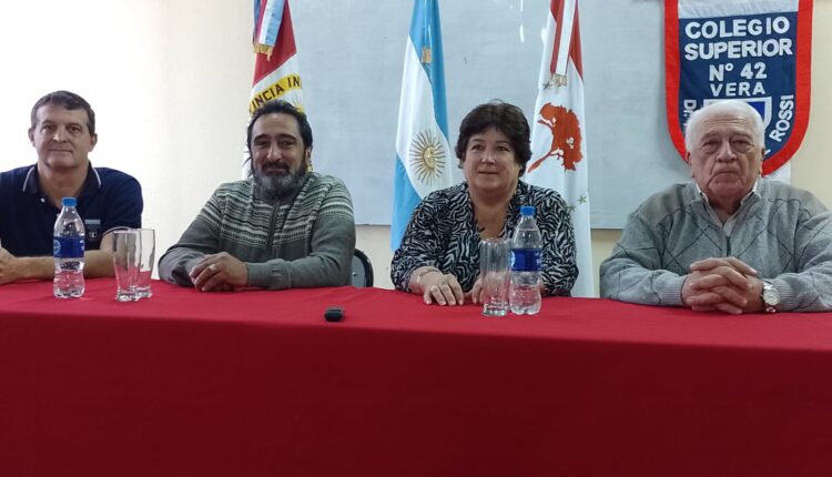Brindaron una conferencia de prensa en representación del colegio Walter Pighin. Los organizadores, Senador Osvaldo Sosa, y la titular de AMSAFE, Nelcy Suligoy junto al Lic. José Tasat, de una extensa trayectoria en el ámbito educativo.