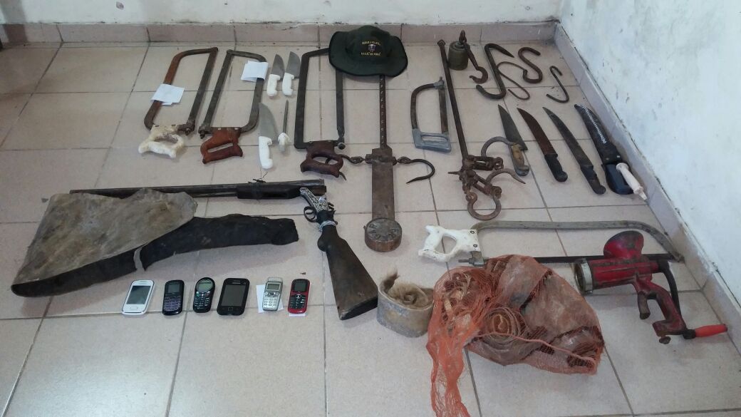 Se relizaron en dicha localidad diversos allanamientos Expedidos por el Juez en lo Penal Dr. JORGE ALBERTO GALBUCERA, los cuales se llevaron a cabo en carnicerías y casas de familias, lográndose el secuestro de diversos elementos de utilidad para la causa entre ellos: teléfonos celulares, cuchillos, chaira, sierra, machetes, balanzas tipo pilón, maquina de moler carne, ganchos, arma de fuego como escopeta, varios trozos de cuero de animal vacuno, carne vacuna, como así varios elementos más para la causa.