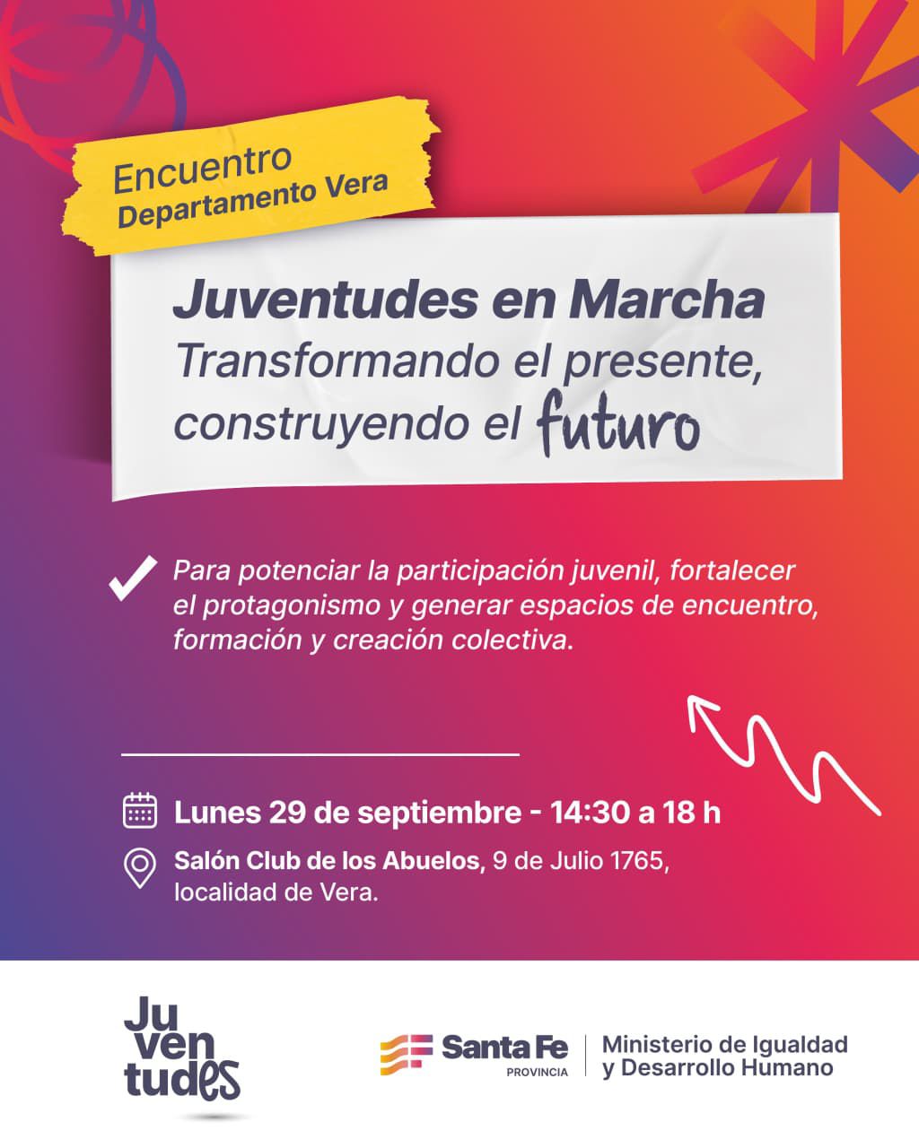 El lunes 29 de septiembre, Juventudes en Marcha se encontrará en la ciudad de Vera para seguir construyendo un presente con más participación, protagonismo y espacios de formación para, con y desde las juventudes.